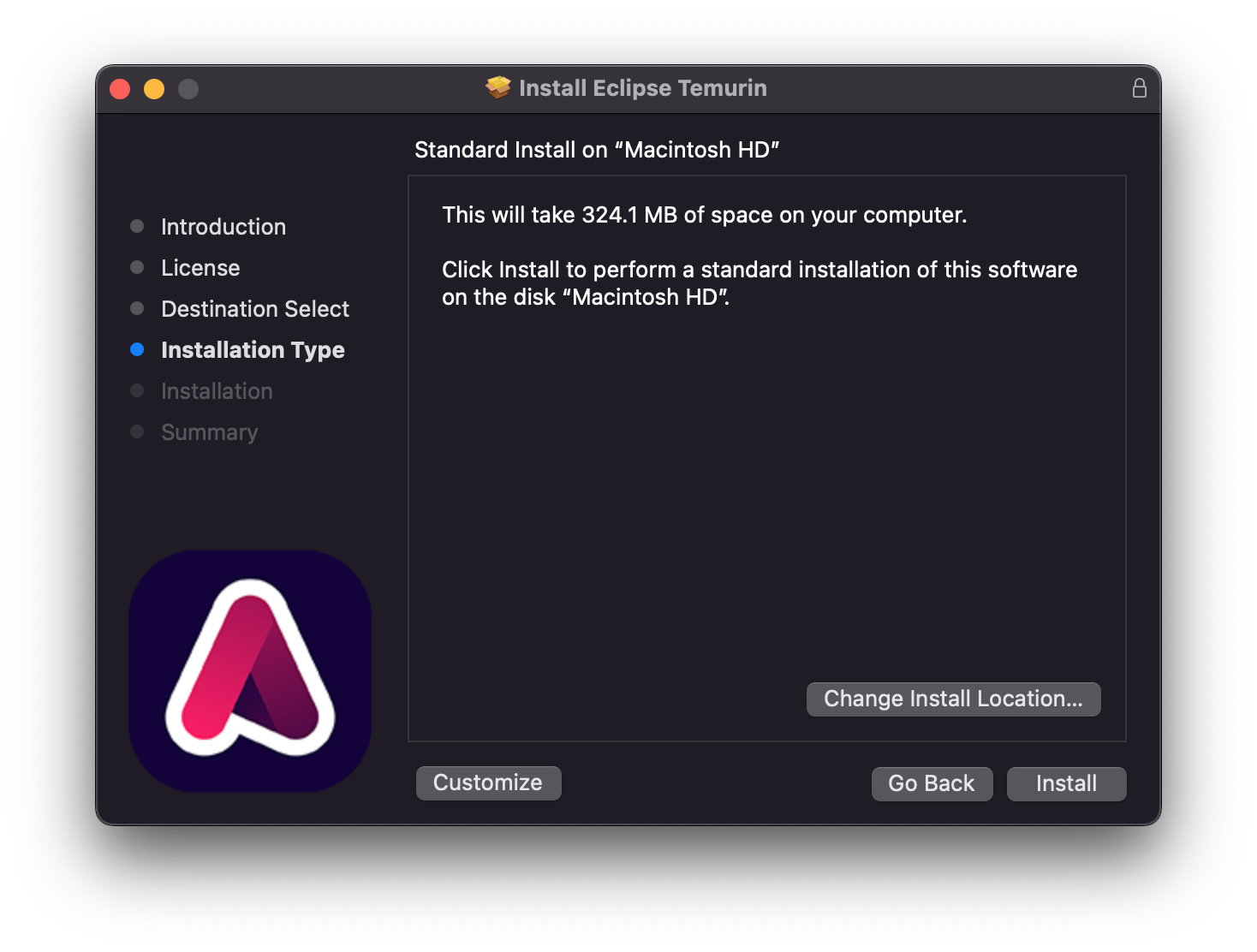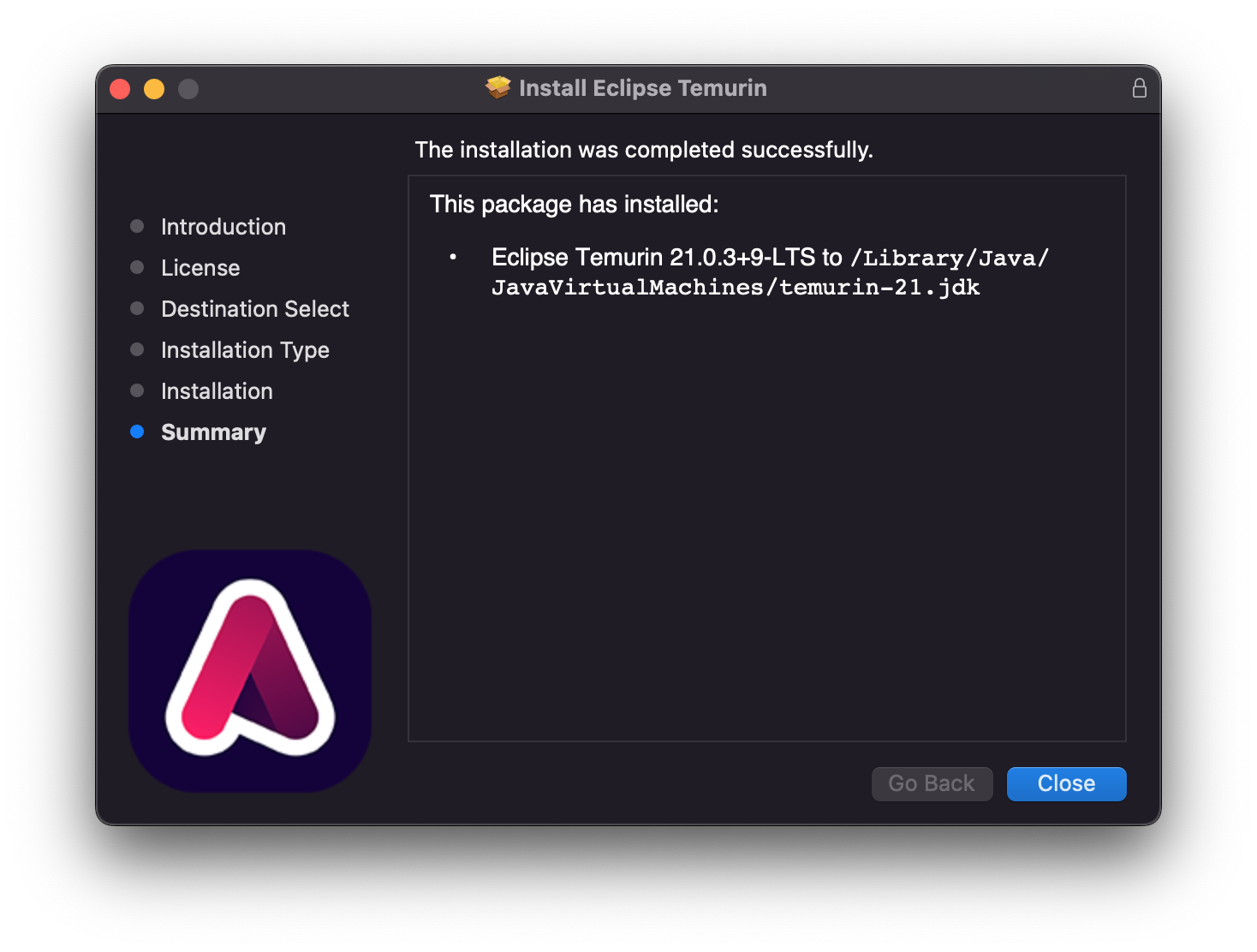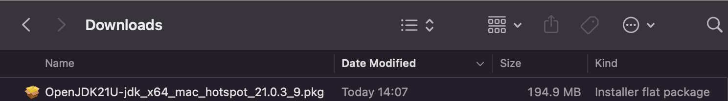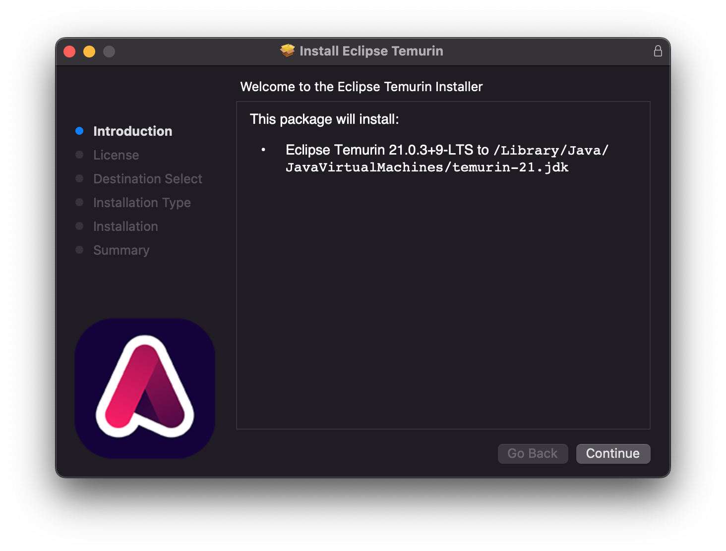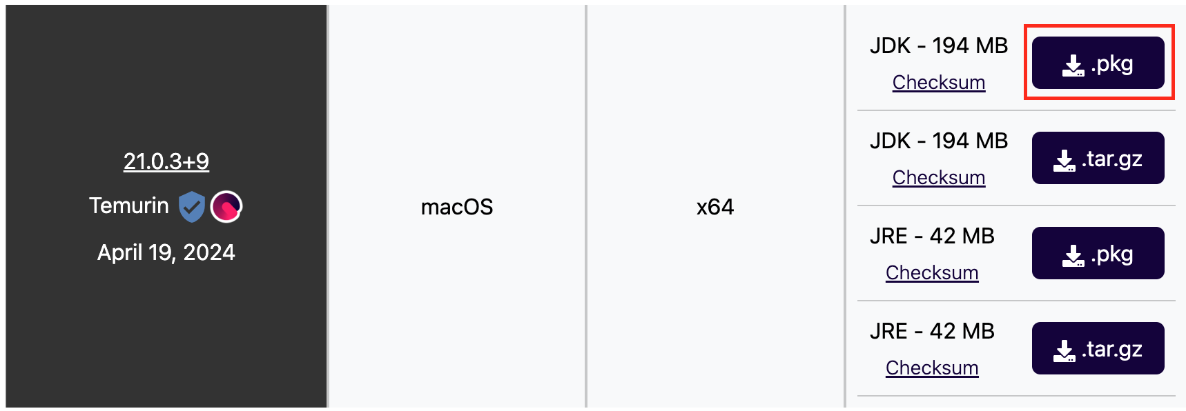 설치는 기본 경로인 /Library/Java/JavaVirtualMachines/temurin-21.jdk 에 설치 된다.