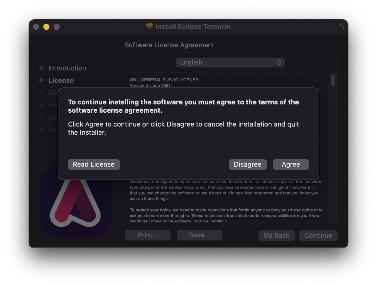 소프트웨어 설치에 동의해야 설치가 진행 된다. "Agree" 버튼을 클릭하여 설치를 계속 진행 한다.
