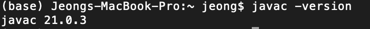 설치한 버전 "javac 21.0.3" 이 표시 되면 잘 설치 된것이다.