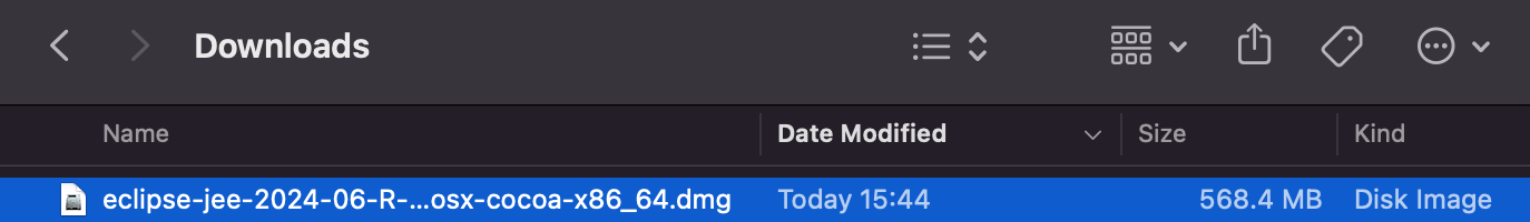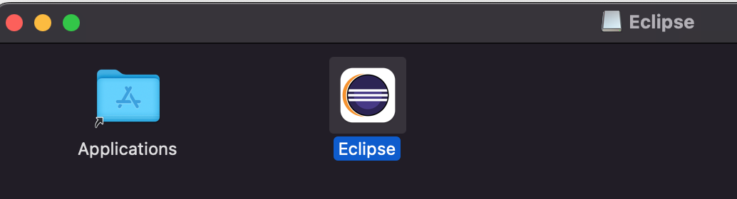 dmg 파일은 윈도우의 iso 같은 파일로서, 맥에 마운트 되면서 아래와 같이 Eclipse 폴더가 실행 된다.