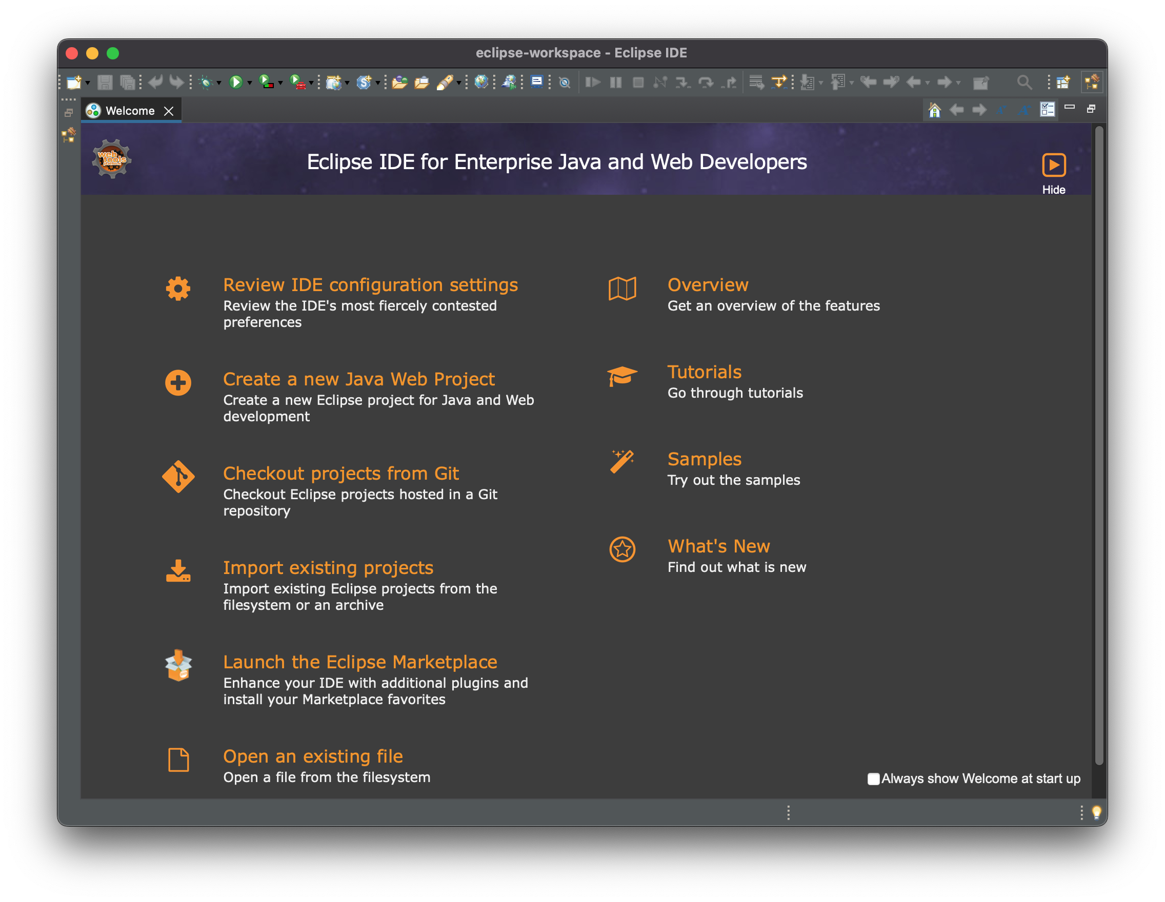 아래와 같이 "Eclipse IDE" 가 실행 된다.