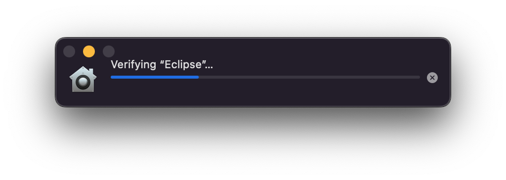 "Eclipse" 를 실행 하면, 아래와 같이 "Verifying "Eclipse"..." 가 실행 되며,