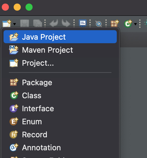 Eclipse를 실행한 후, "Java Project" 를 선택 한다.
