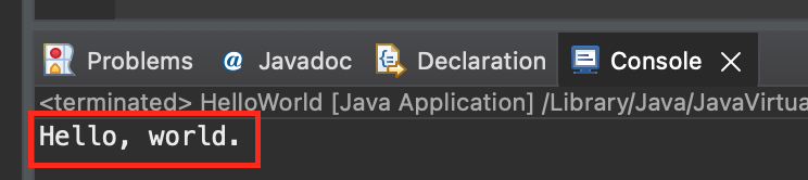 그러면 아래와 같이 터미널에 "Hello, world." 가 출력 된다.