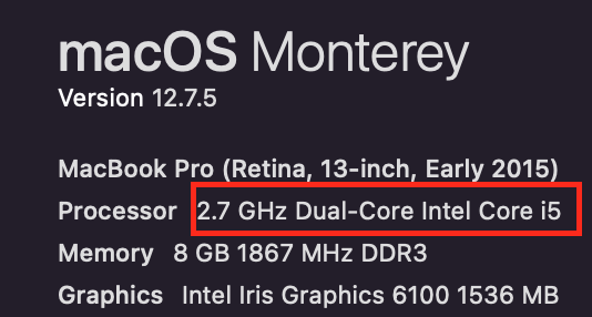 Processor 가 Intel 인지 또는 Apple 인지 확인 하면 된다.
