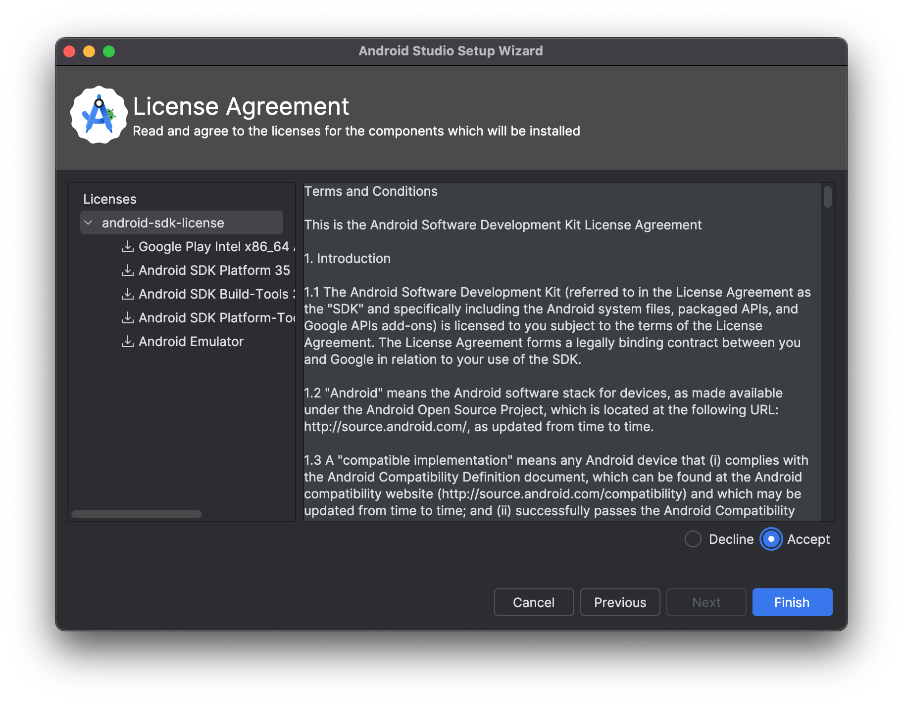 마지막으로 동의 한다는 "Accept" 를 선택 하신후 "Finish" 를 선택 합니다.