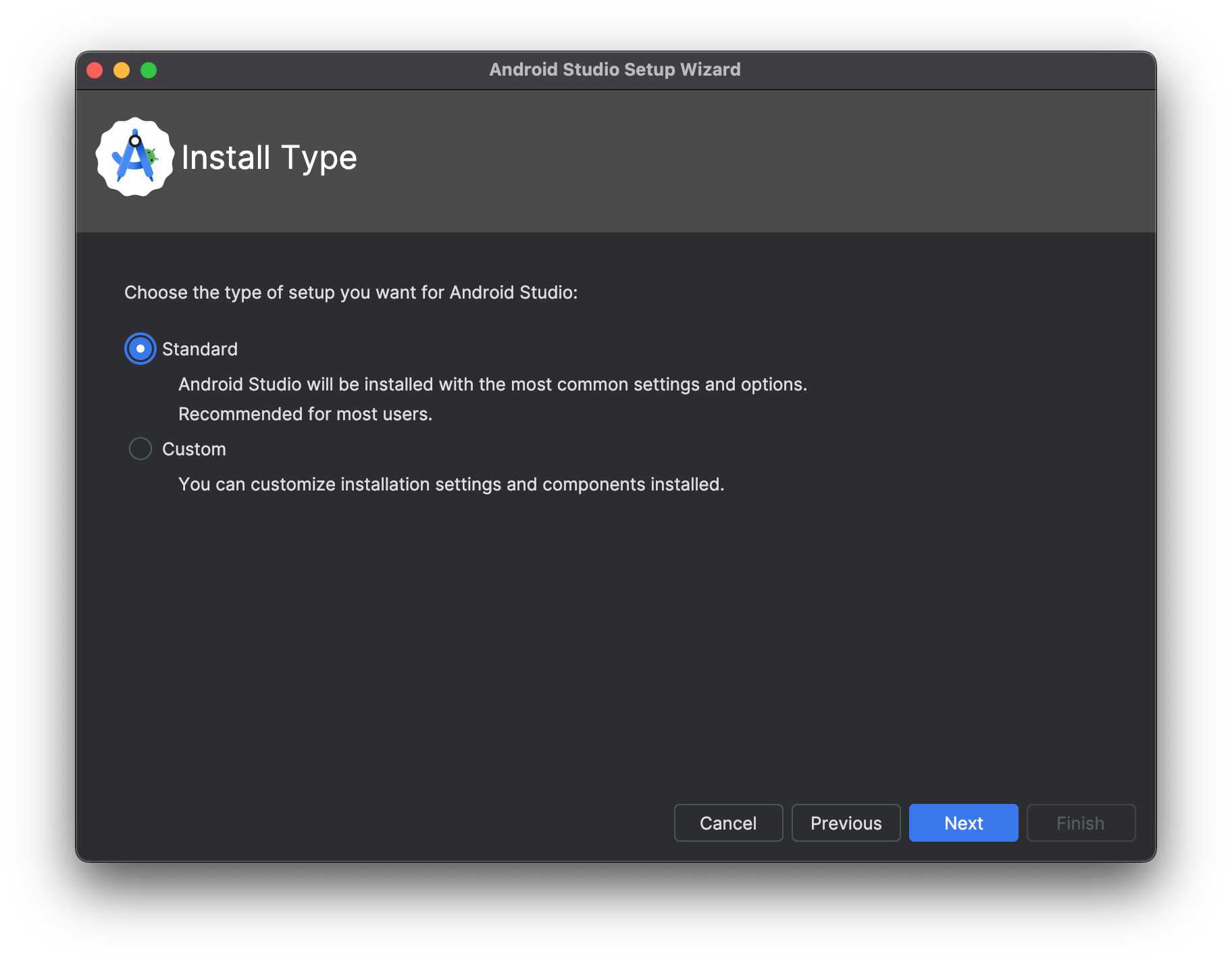 기본적으로 권장 하는 "Standard" 가 선택되어 있는 상태로 "Next" 를 클릭 합니다.