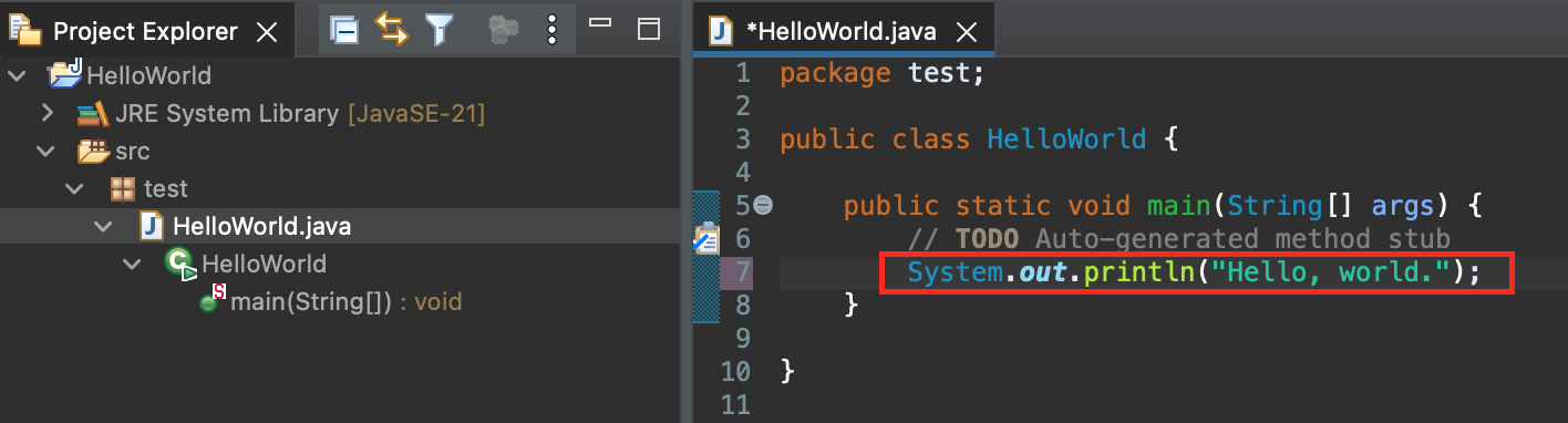 HelloWorld.java 파일이 생성 되면, 아래와 같이